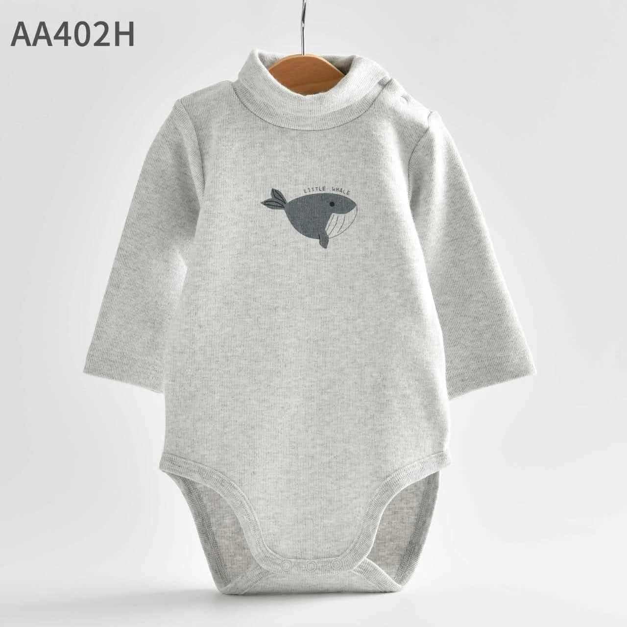 Keep your little one cozy in this high-neck (turtleneck) thick cotton bodysuit, designed for warmth and comfort. It features two snap buttons on the shoulder for easy dressing, long sleeves, and bottom snap closures for quick diaper changes. The soft fabric is gentle on baby’s skin, while the adorable “Little Whale” print adds a cute, playful touch. Perfect for everyday wear in cooler weather.