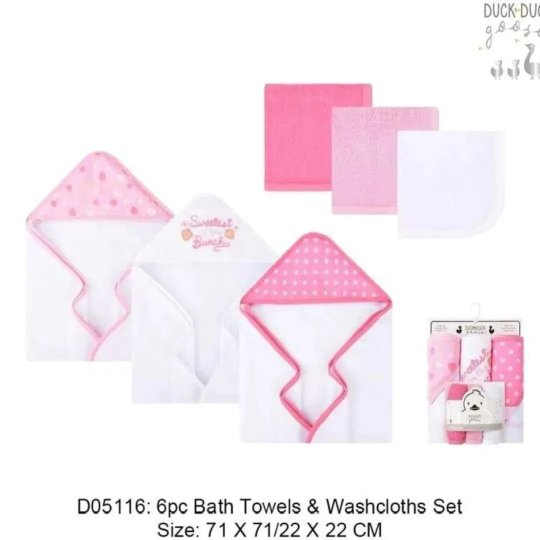Cuddle your little “Sweetest Bunch” after every bath with this delightful Duck Duck Goose 6-Piece Bath Set! Featuring vibrant pink and crisp white, this set is perfect for welcoming a baby girl or adding a pop of color to bathtime.
