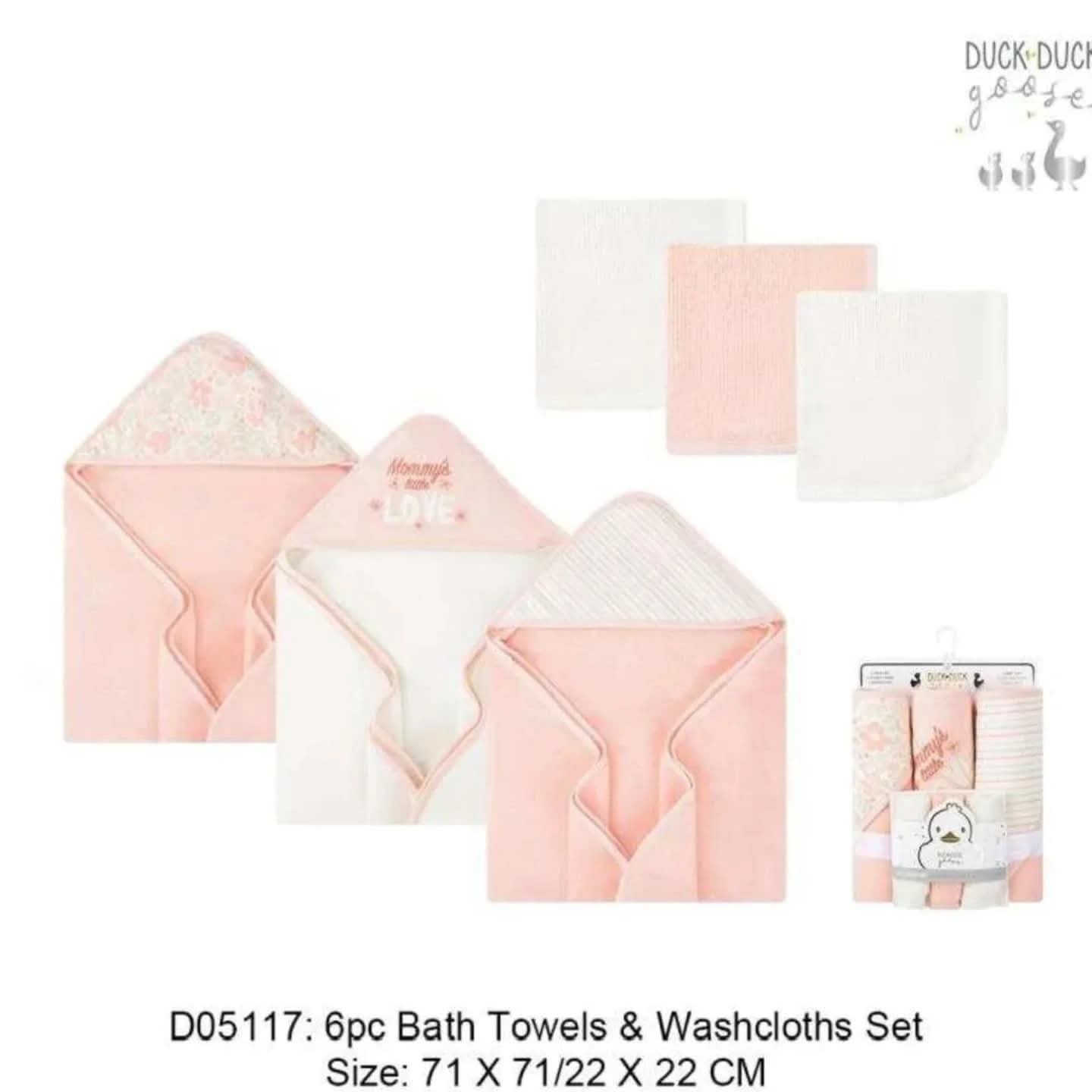 Give your little one the softest post-bath cuddle with this adorable Duck Duck Goose 6-piece Bath Set!