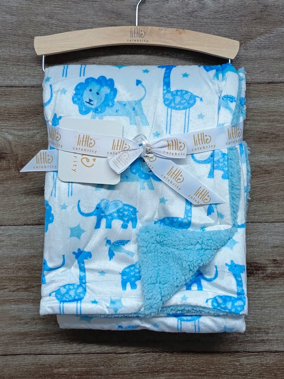 Wrap your baby in warmth and style with the Little Celebrity Baby Winter Blanket in an adorable blue animal print. Designed with ultra-soft materials, this cozy blanket features playful lions, giraffes, elephants, and stars – perfect for keeping your baby snug during colder months.