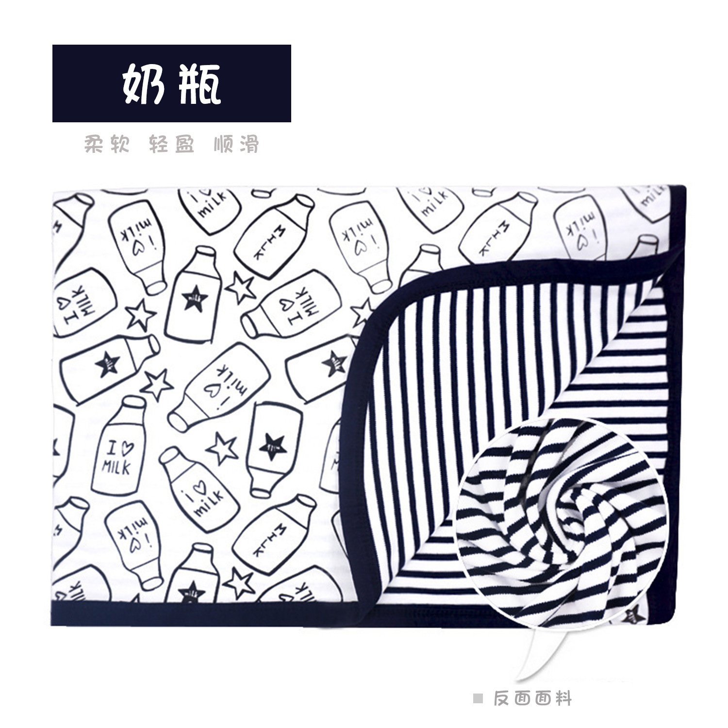 Got milk? 🍼 Our new “I Love Milk” reversible blanket is the perfect blend of cute and cool! Featuring a fun milk bottle doodle on one side and bold navy stripes on the reverse, this is a must-have for every modern nursery.