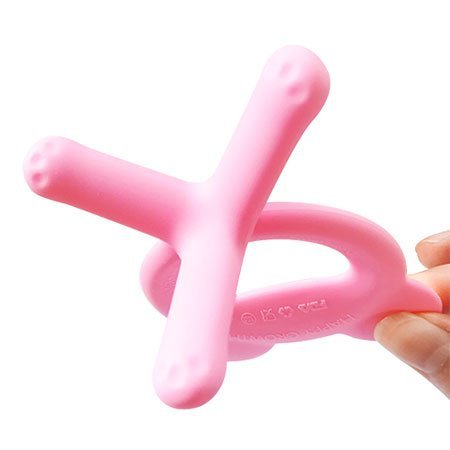 A non-toxic rubber teether (4m+) specially designed to ease the pain and/or soothe your baby.