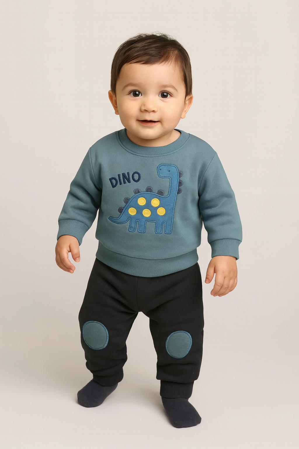 Playful Dinosaur Design: The sweatshirt features a cheerful dinosaur print with the text “DINO,” adding a fun and playful vibe kids love.