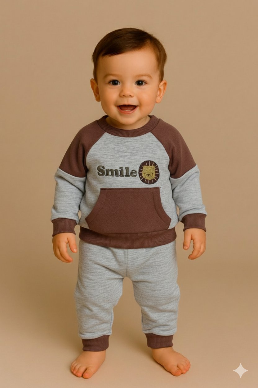 🦁 2-Piece Baby Fleece Set – “Smile Lion” Design